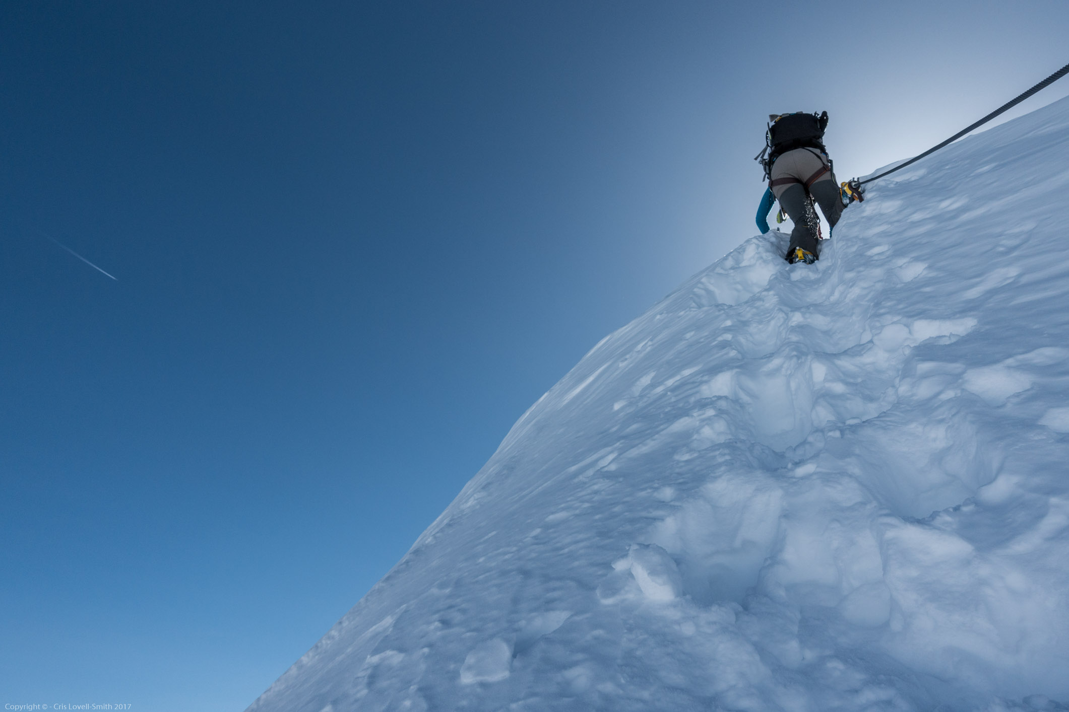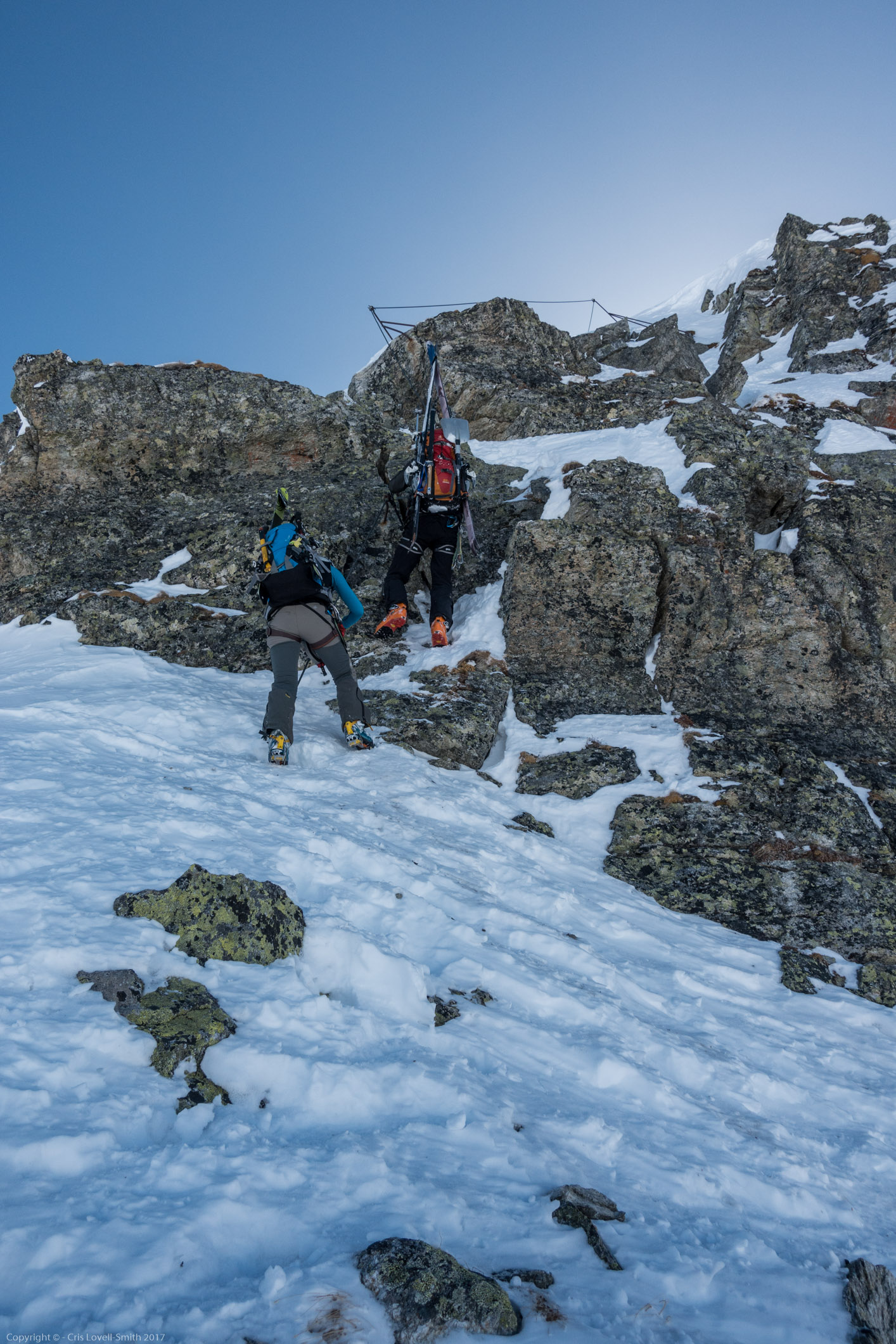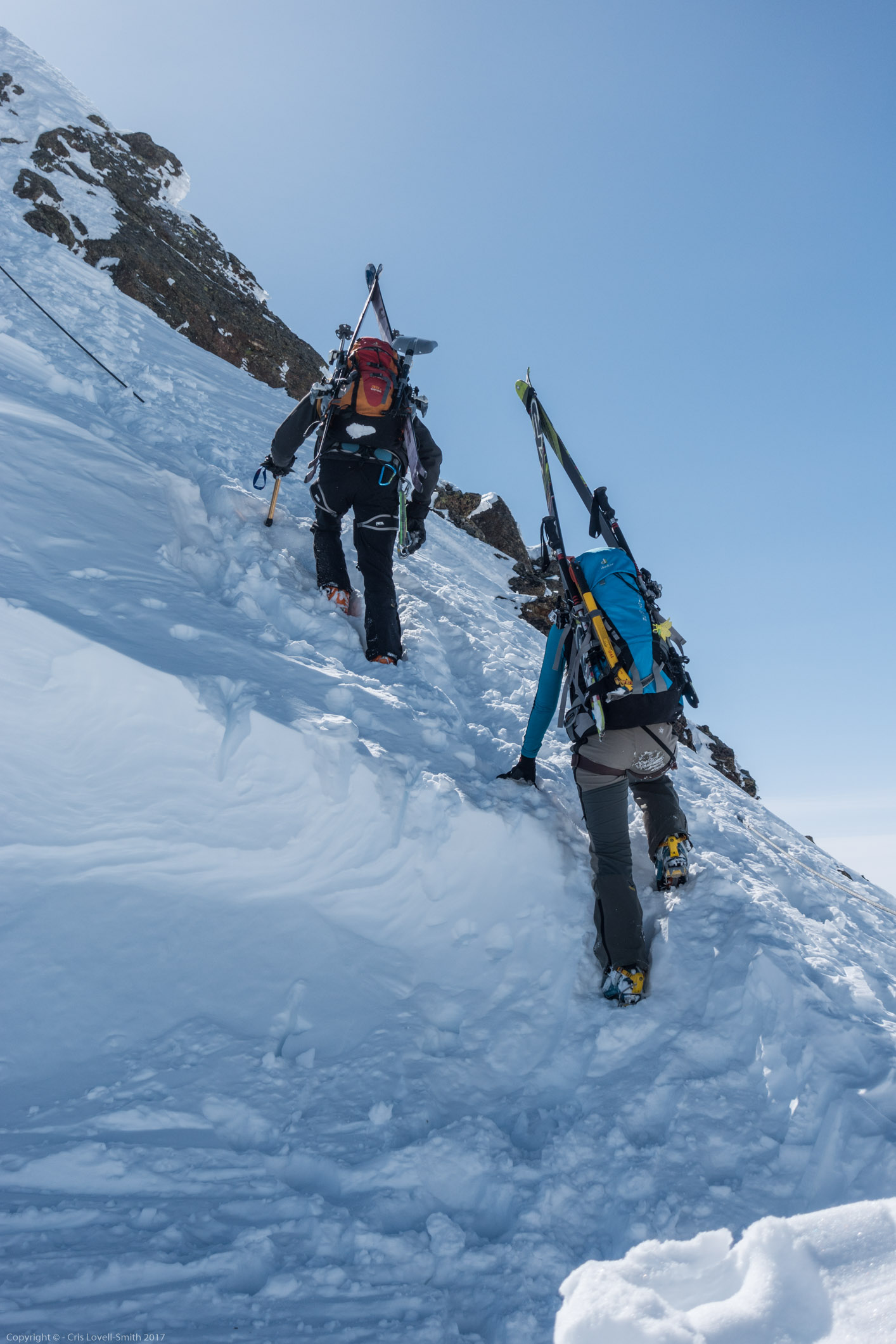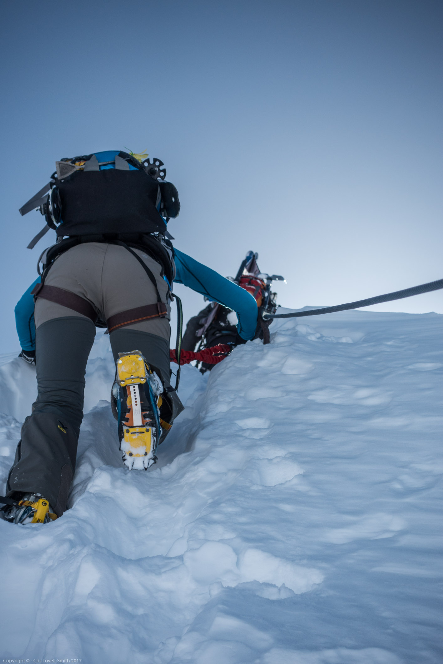 Jörg was very good and talked Leonie through any bits that she was at first unsure about. Leonie did the whole thing wearing crampons which must have been a bit annoying on the rock but perhaps helpful on the snow. If the conditions had been different crampons could really be useful so I’d say it’s definitely worth having them in your bag. I found the snow was soft enough that they weren’t required while we were there.