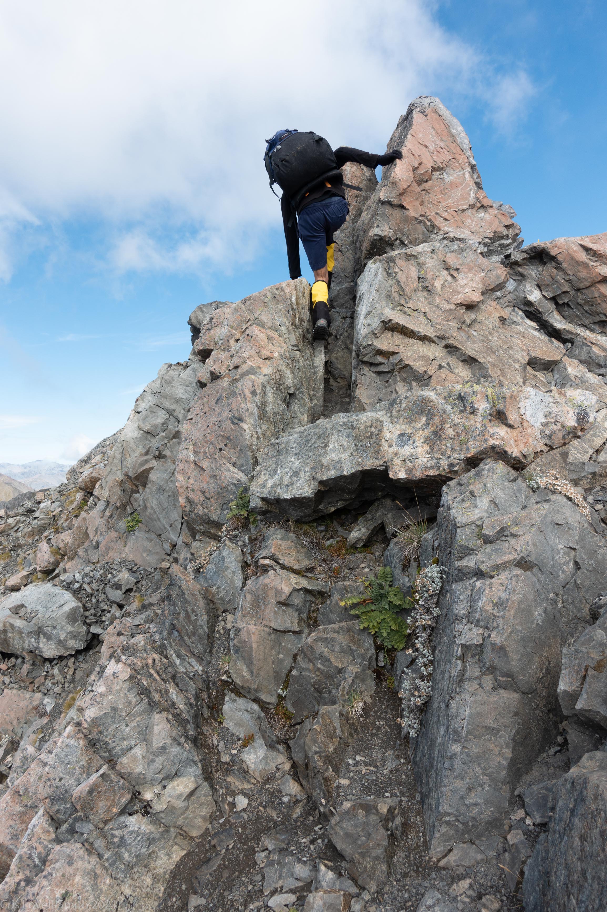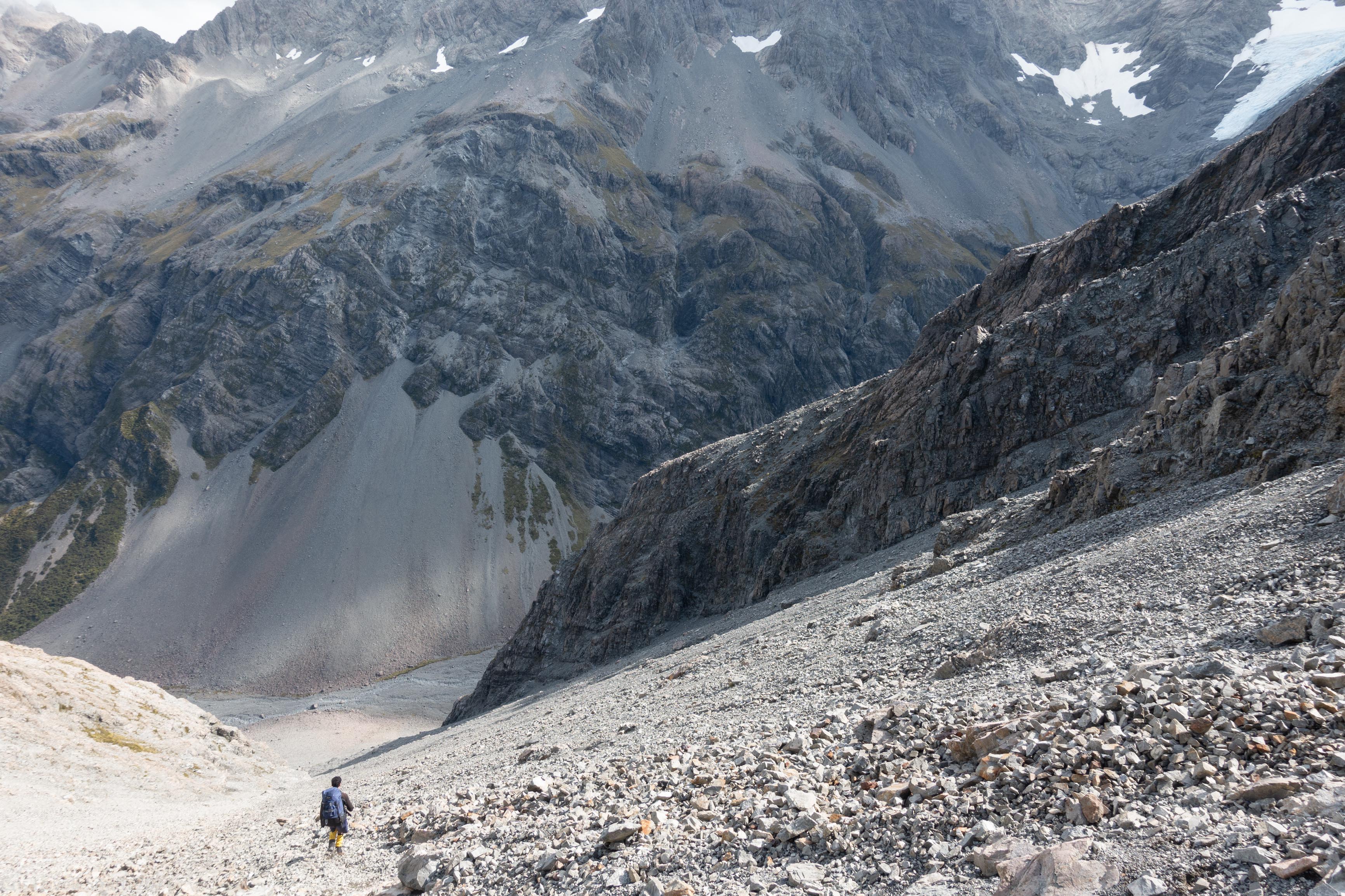 The scree descent is well marked and the screes before this all end in bluffs so should be avoided.