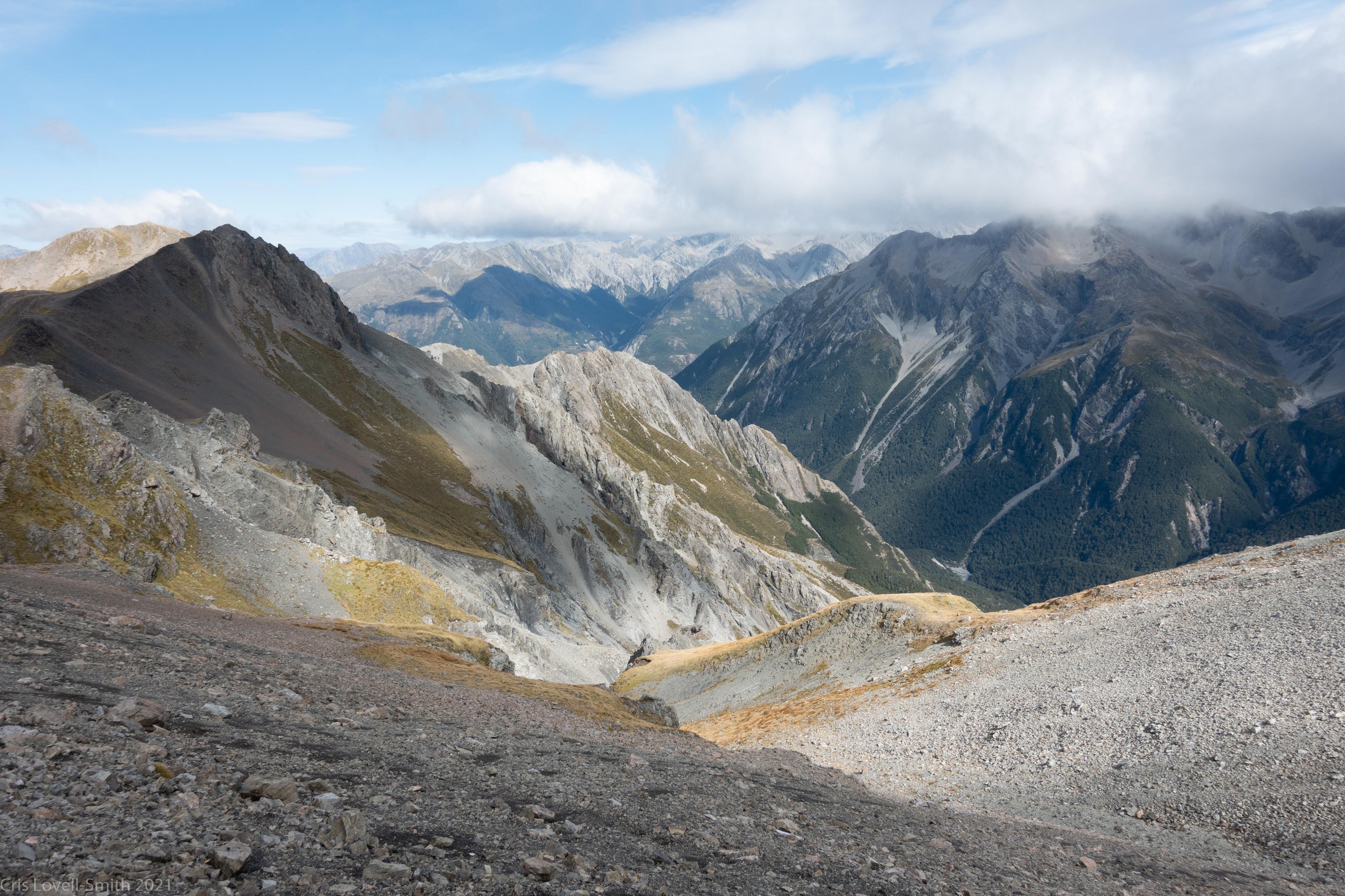 We dropped off the summit towards Bealy and then looped back around under Avalanche Peak to a saddle. Then it was a descent into the main ridge towards Rolleston.