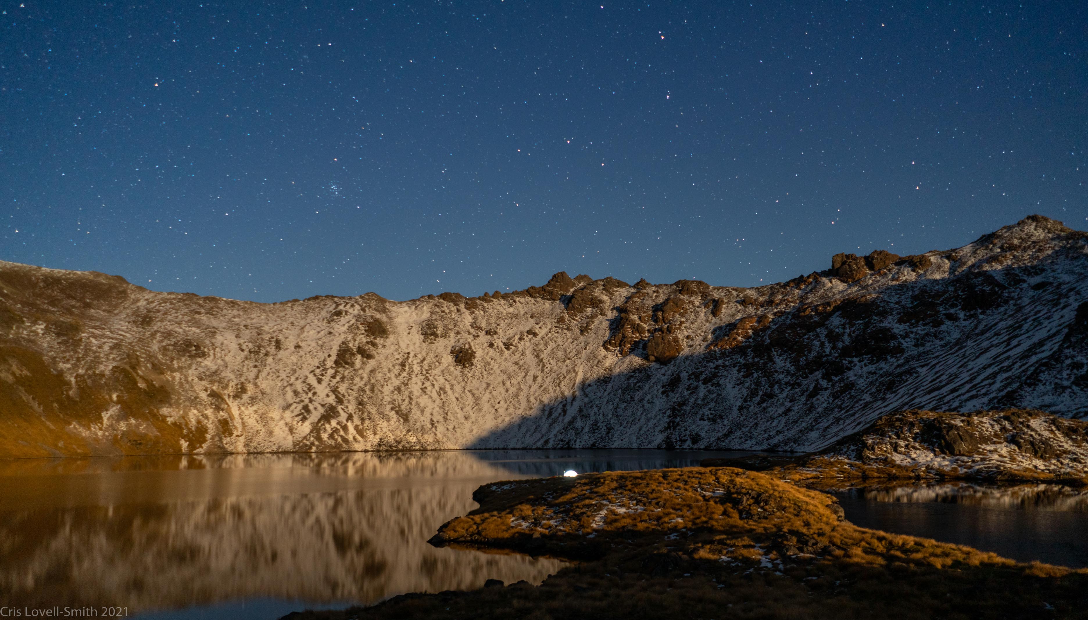 Craig and I drove to St Arnaud after work on Friday evening. We parked near the west bay and set off in the dark. A bit under two hours and we were at Coldwater Hut. Annu had walked in at a more sensible time and met us there.