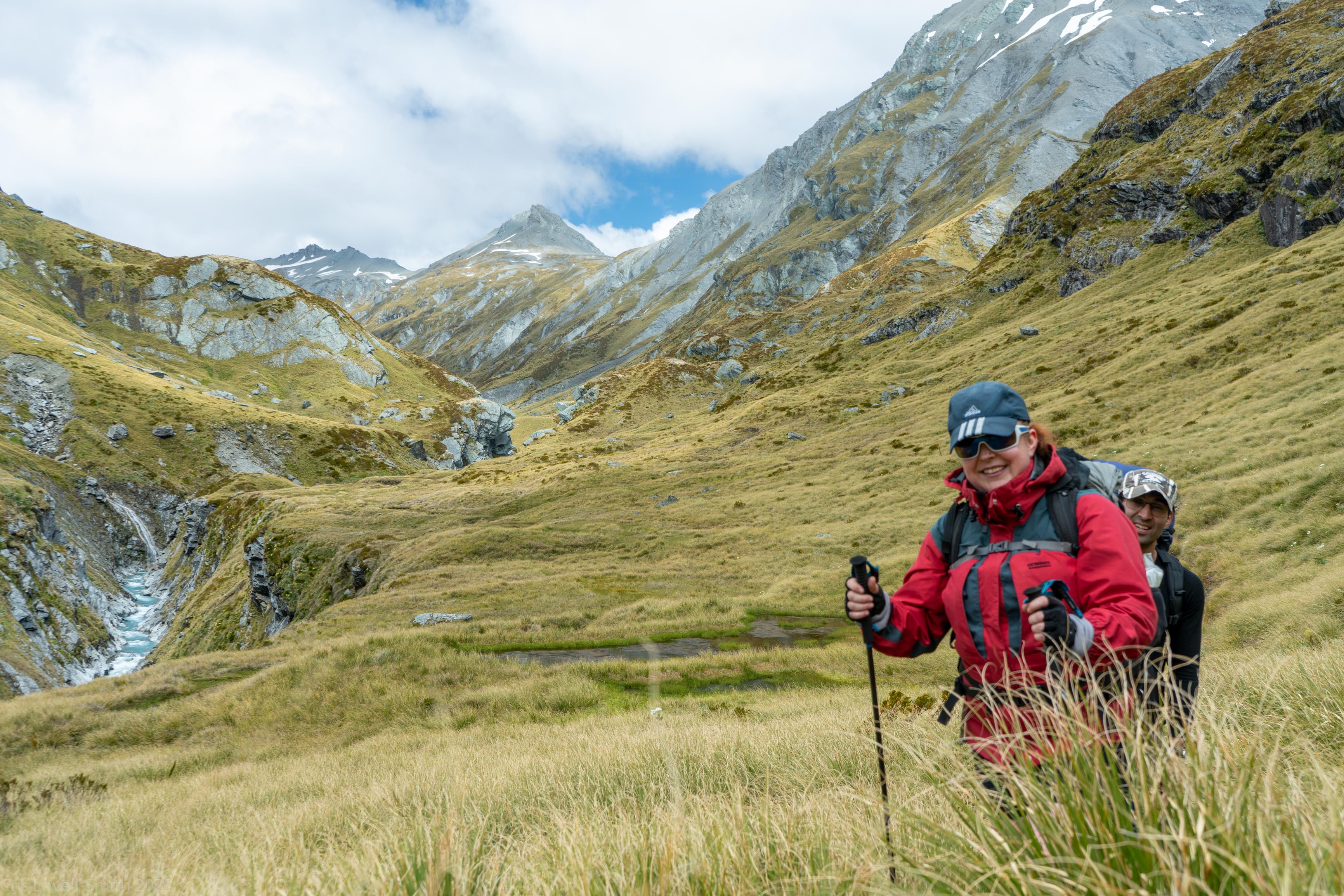 By midday we had reached Rees Saddle and I made us some noodles mixed with the various goodies that we still had, sundried tomatoes, feta, pepper, olives. Jeremy and I took some epic photos at the designated epic photo spot on the hill above the saddle and then we had a slow dawdle down the valley to the hut.