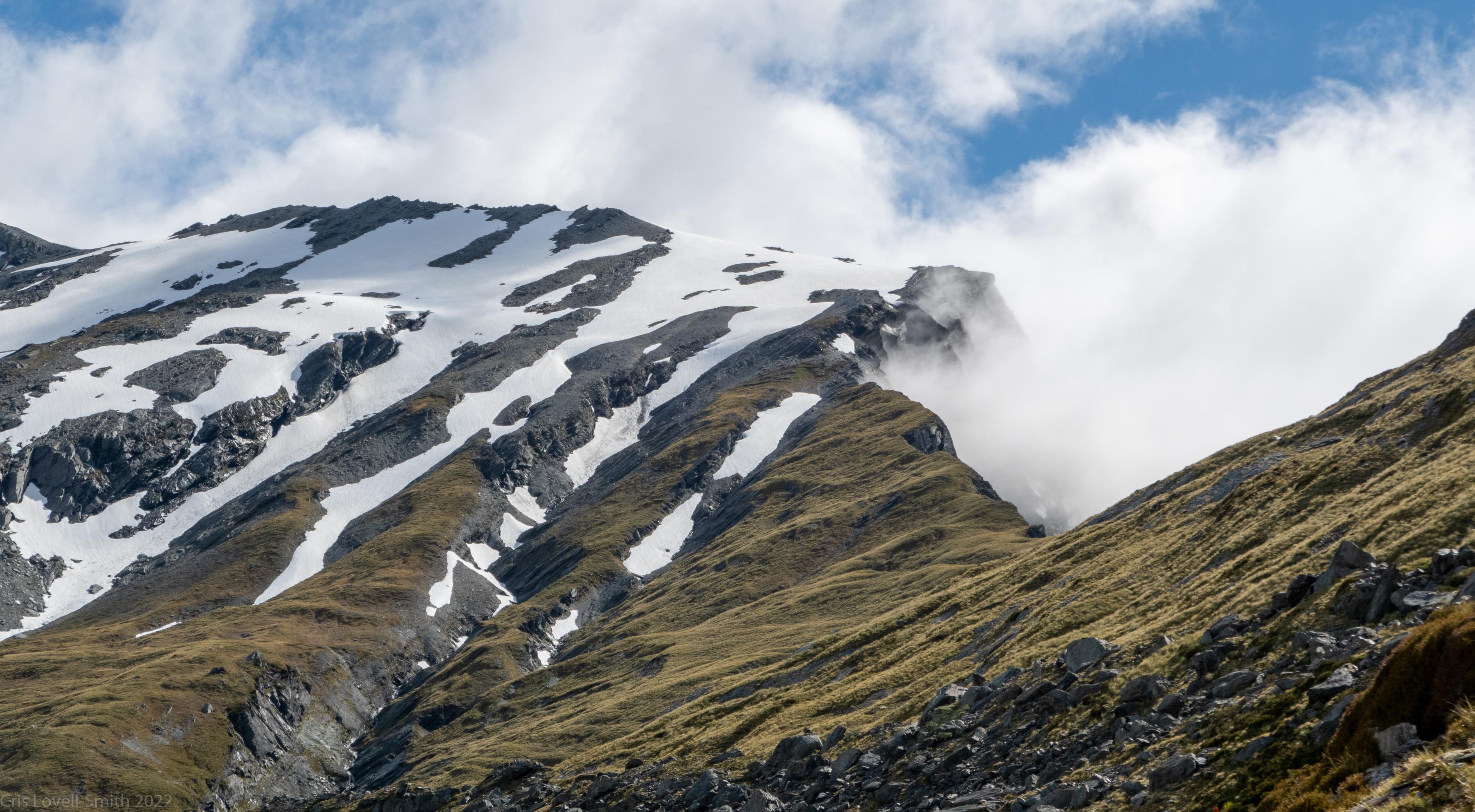 It was New Year’s Day and the new year was bringing fine weather. The hut slowly emptied out with the majority walking to Dayleys Flat Hut. We bucked the trend and headed back up towards Rees Saddle.