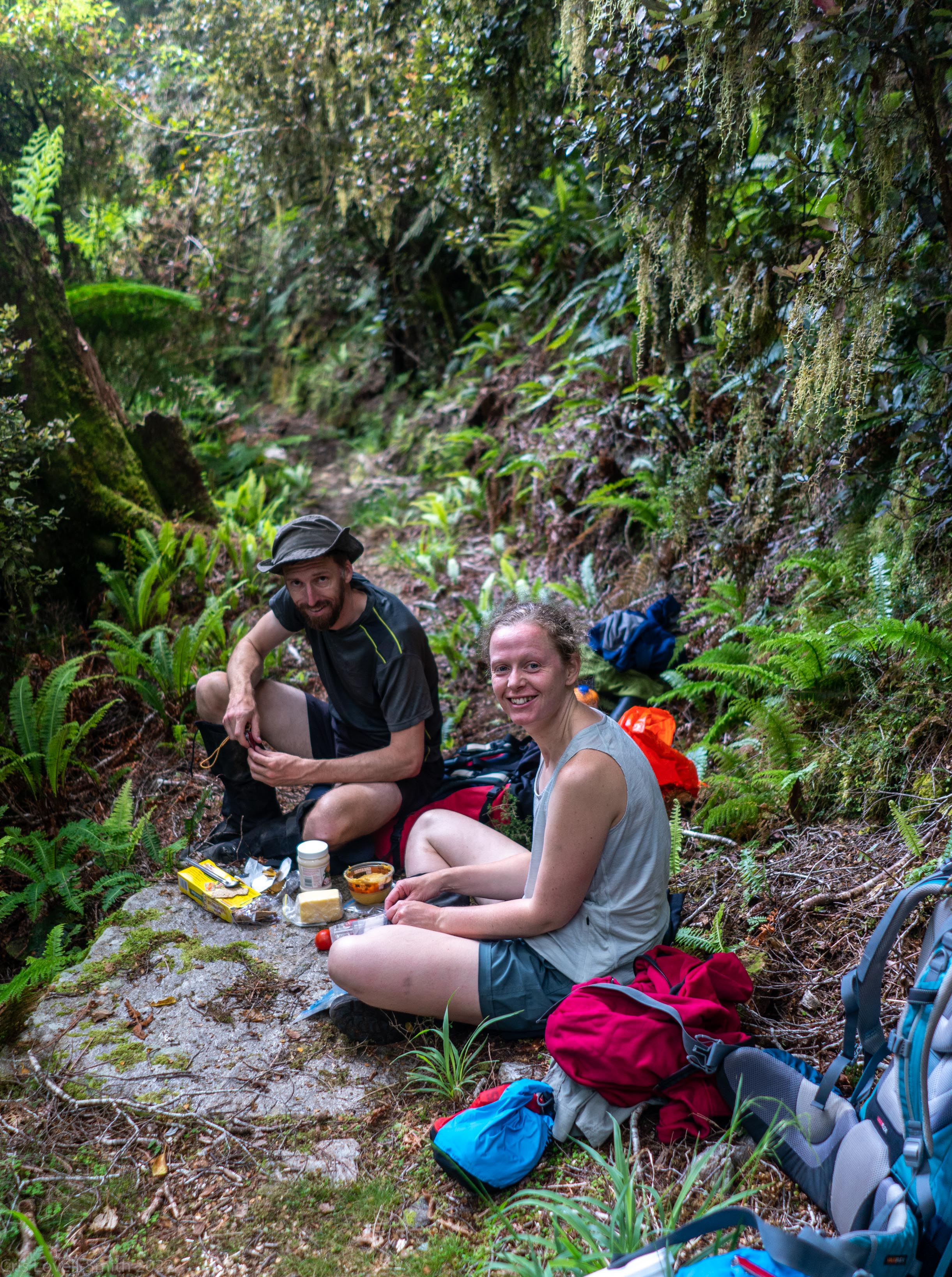 The cloud snuck back in by the morning and we walked down to Maori Saddle Hut from the tops. We faffed around there with cups of tea and food for a while before walking out towards Blowfly Hut and back to the road. We treated ourselves to a swim in Lake Paringa and drove North. We camped at Lake Ianthe in the evening and enjoyed the sandflies and mosquitos as we cooked “the last supper”. The following day we drove back to Christchurch. The sky was moody and so was Craig’s stomach so we skipped our planned canyon and went through Cave Stream instead.