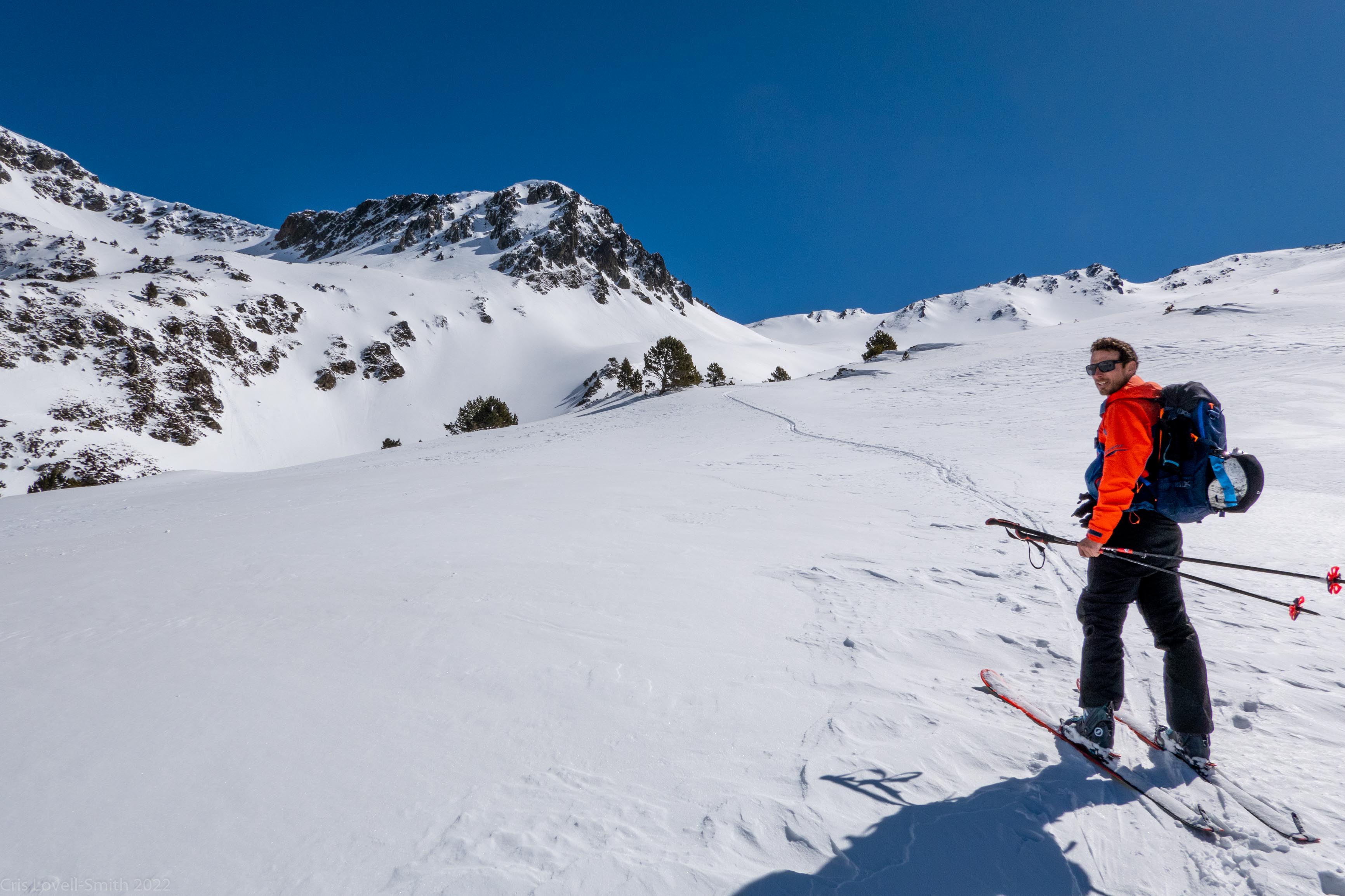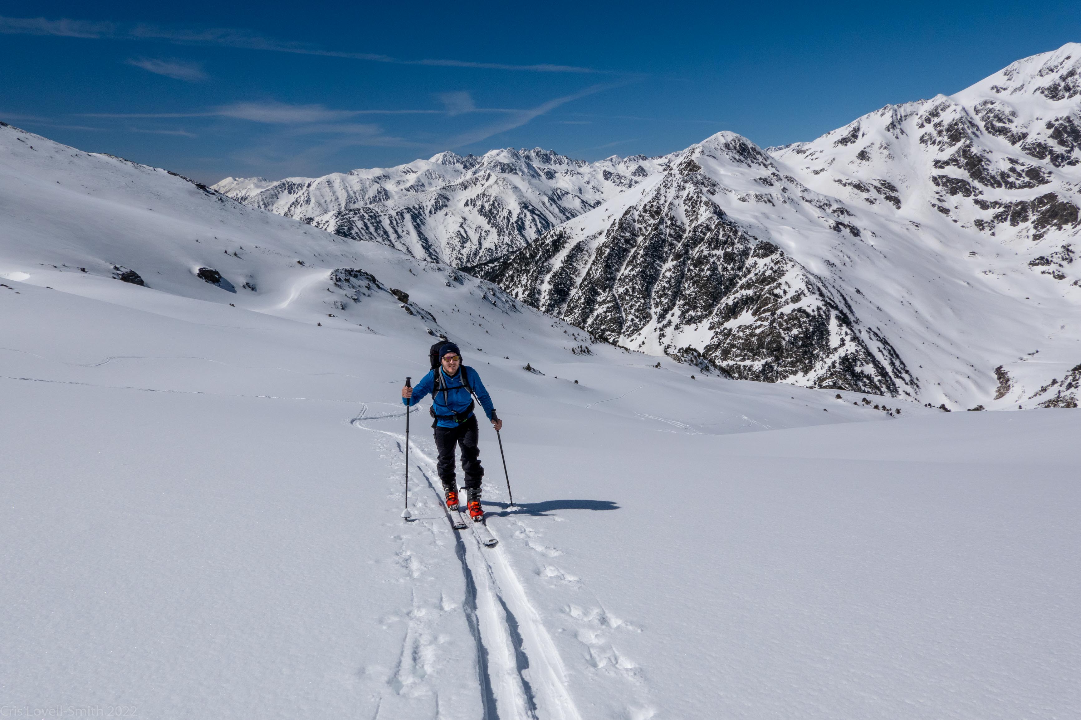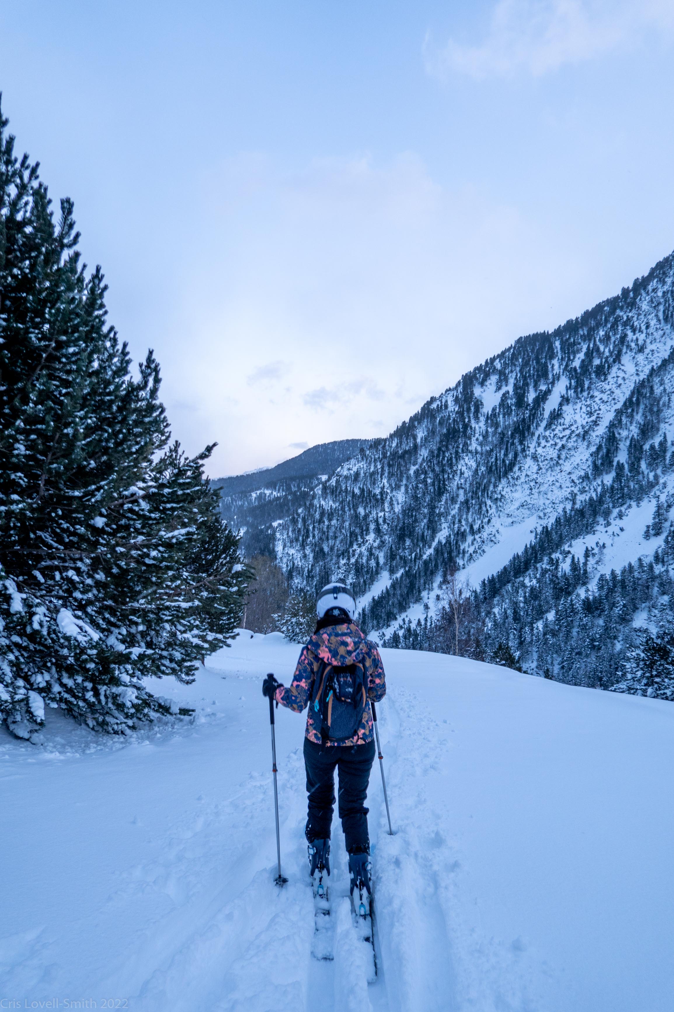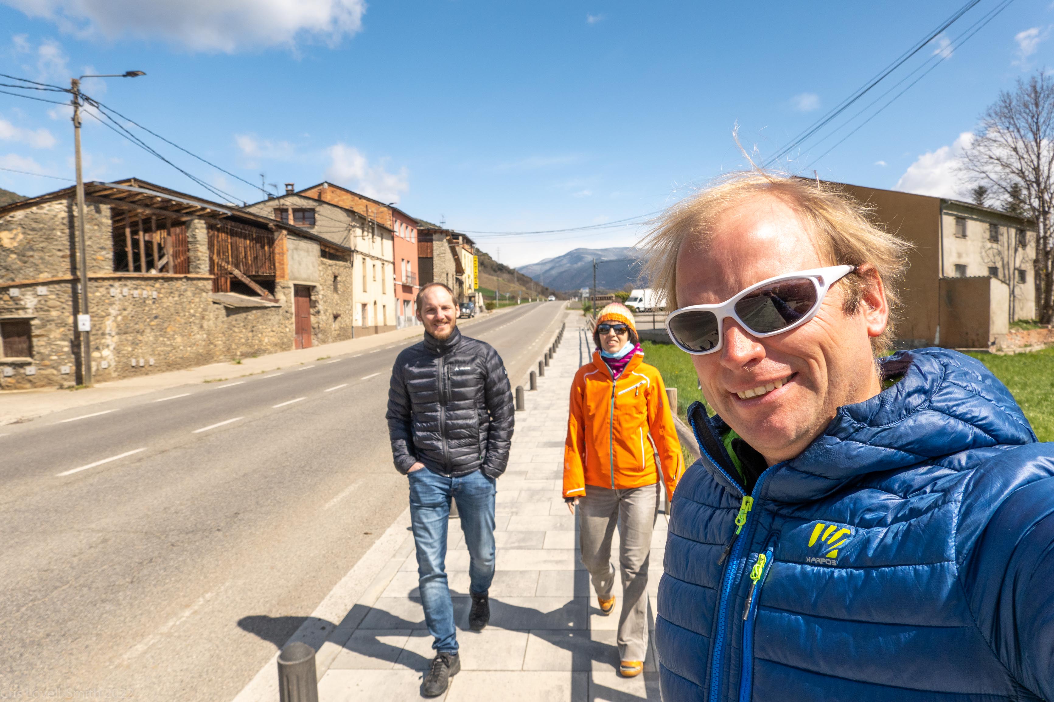 Johannes and I both arrived late on Friday evening in Barcelona and Ari made two trips out to the airport to pick us up. We left for Andorra on Saturday morning with our skis packed in the back of her dad’s car. I drove for a bit once we left the highway and we found a restaurant for lunch along the way. The weather was clearing in Andorra when we arrived, after a big dump of snow. We met Anaïs at her flat and decided to make the most of the late afternoon and head out for a ski tour. We drove away from the blue sky and sunshine that was starting to creep over Andorra, back towards the grey cloud. No matter, it was getting late in the afternoon anyway. We toured up a small road covered in powdery snow. Johannes, Milan (Anaïs’s friend) and I went ahead and turned around just before 8pm as dusk was falling. The descent on my rental skis was fast and I did my best to avoid the rocks poking through the powder. There was no base just the fresh snow that had fallen over the last 24 hours.