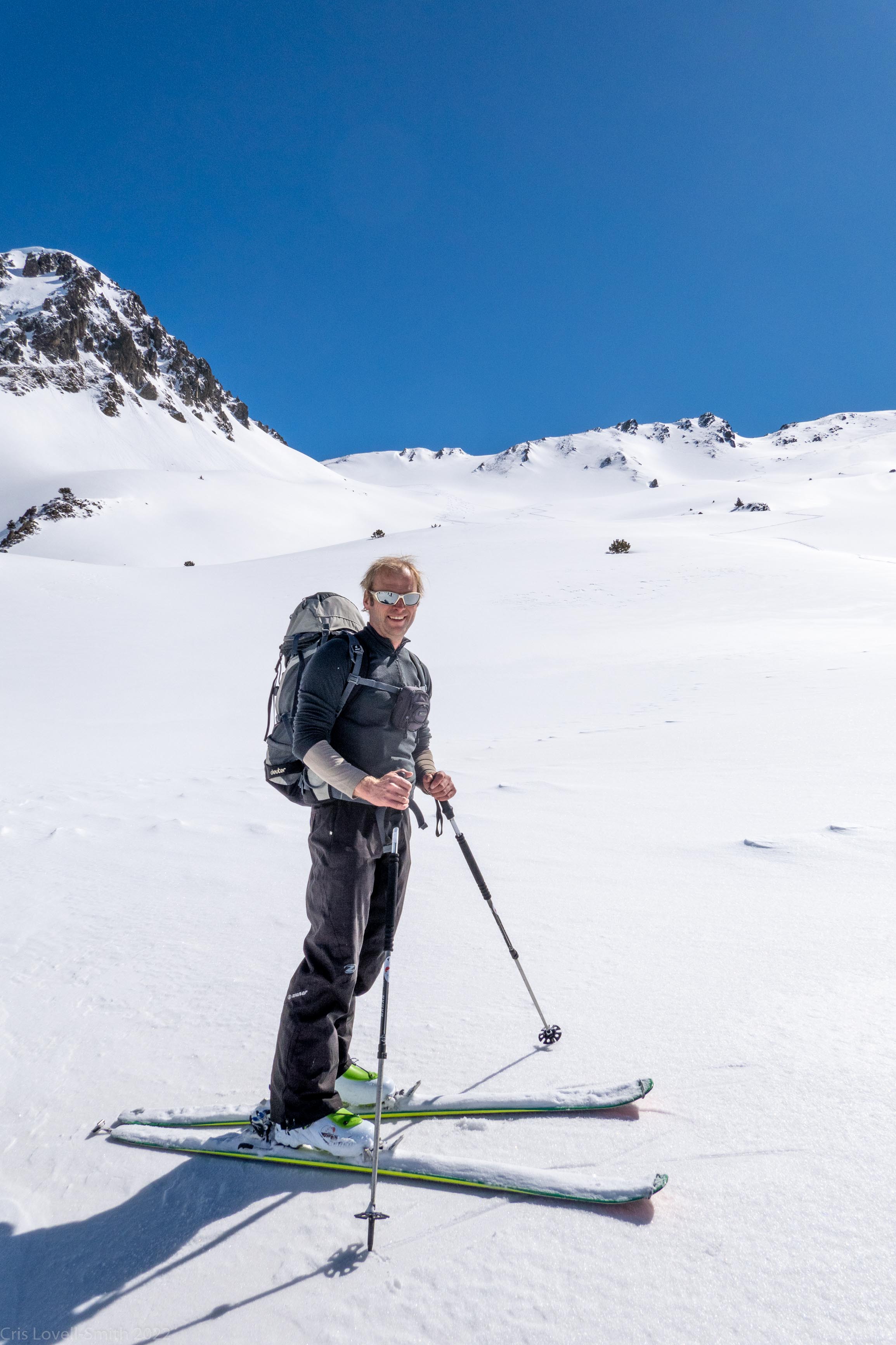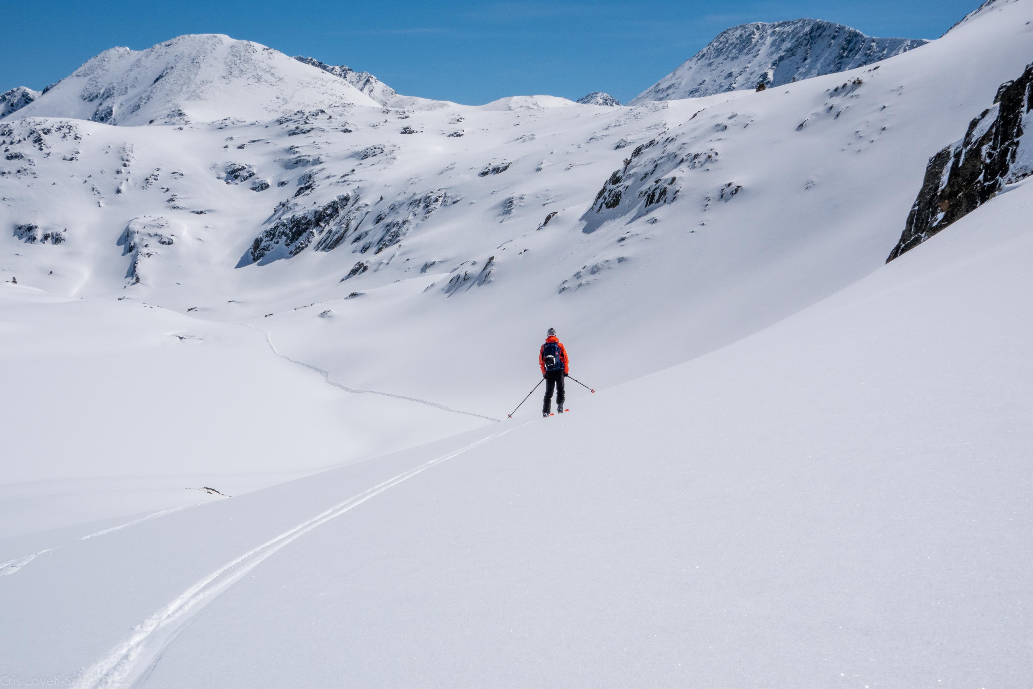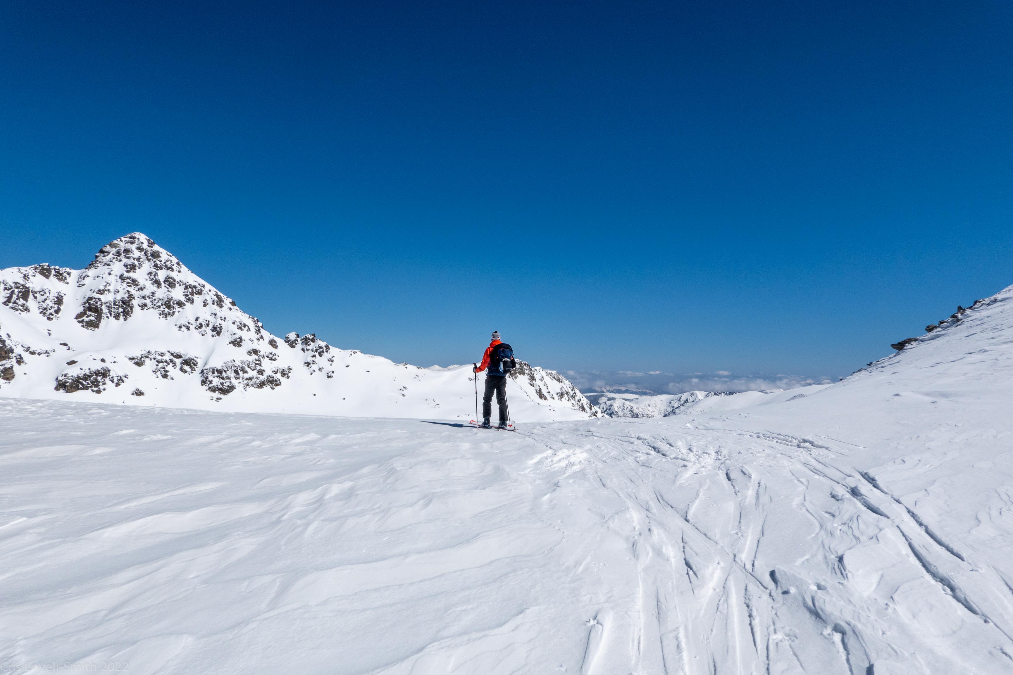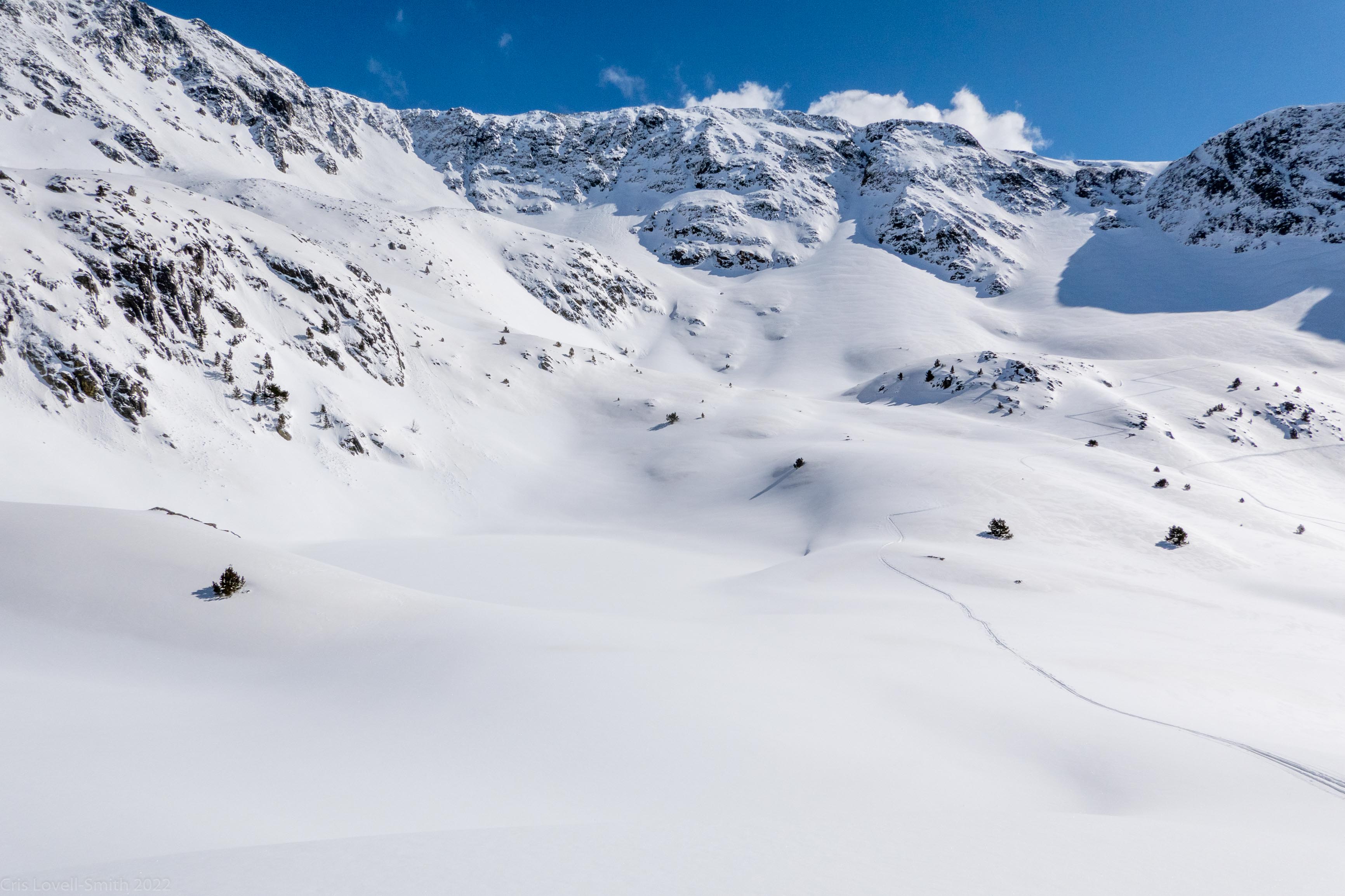 It was another sunny day. Johannes and I headed back up to where we were yesterday with Anaï’s friend Milan. Ari went to do some downhill skiing and Anaïs headed off to work. We’d planned a longer tour than yesterday. The avalanche danger was fairly high so we were aiming to avoid steep slopes. We headed off North up a valley from the car park and skinned up to a saddle. All around was blue sky and white snow. There was still enough fresh powder snow on the ground to make skiing really enjoyable. We got to a saddle and took a short break before having a perfect run down the other side. It was such an amazing feeling. That’s what we do it for I said to Milan as we regrouped and he agreed.