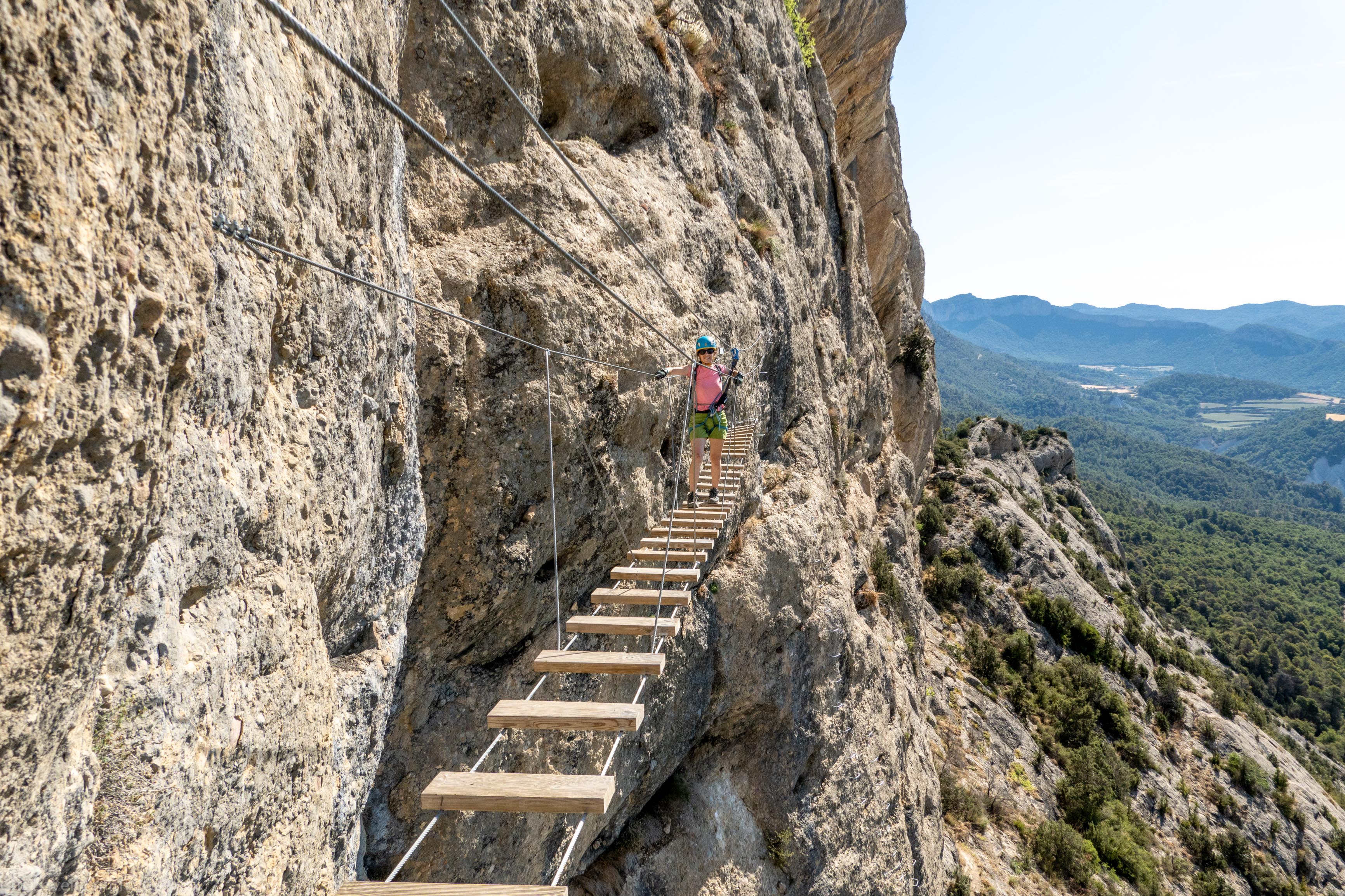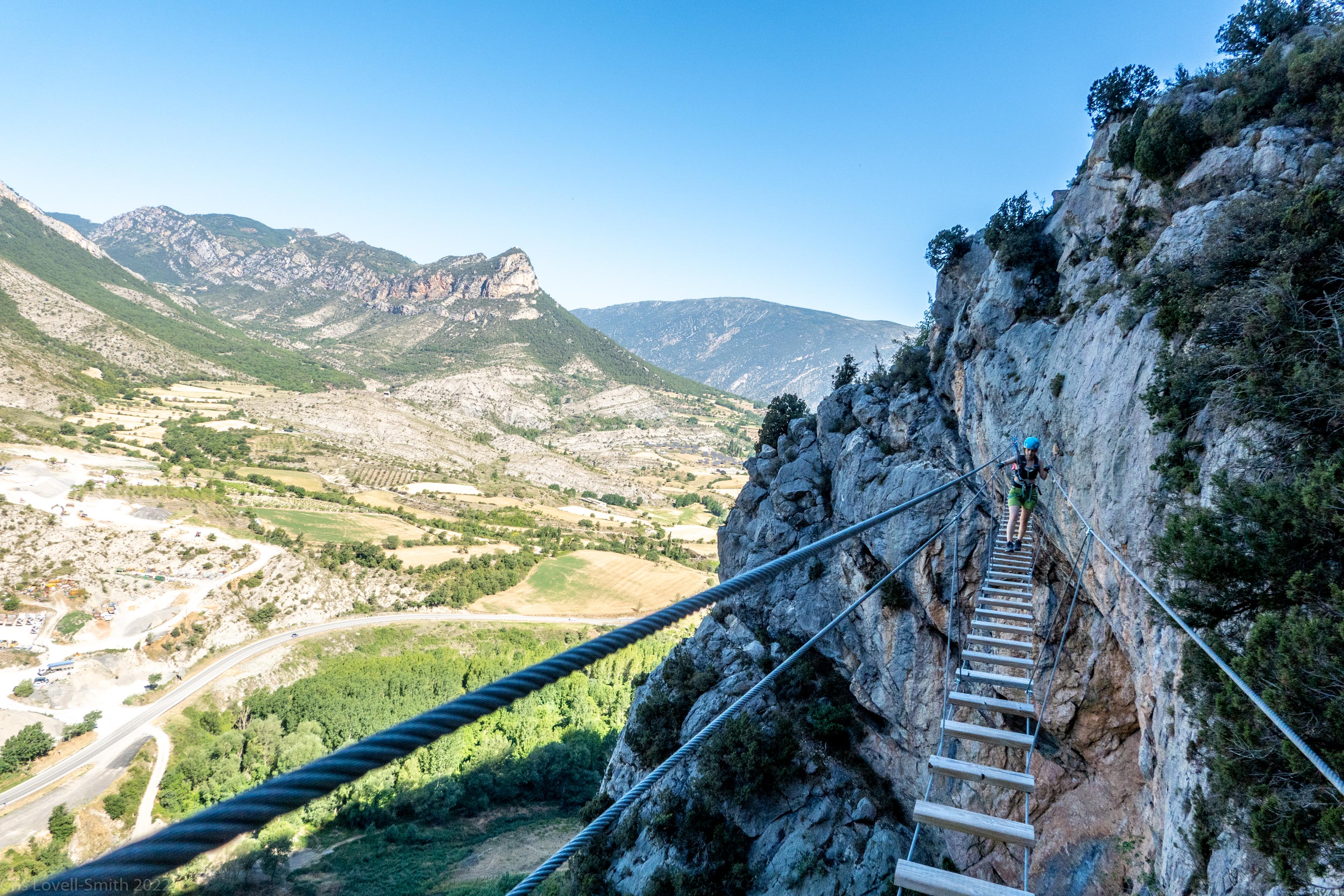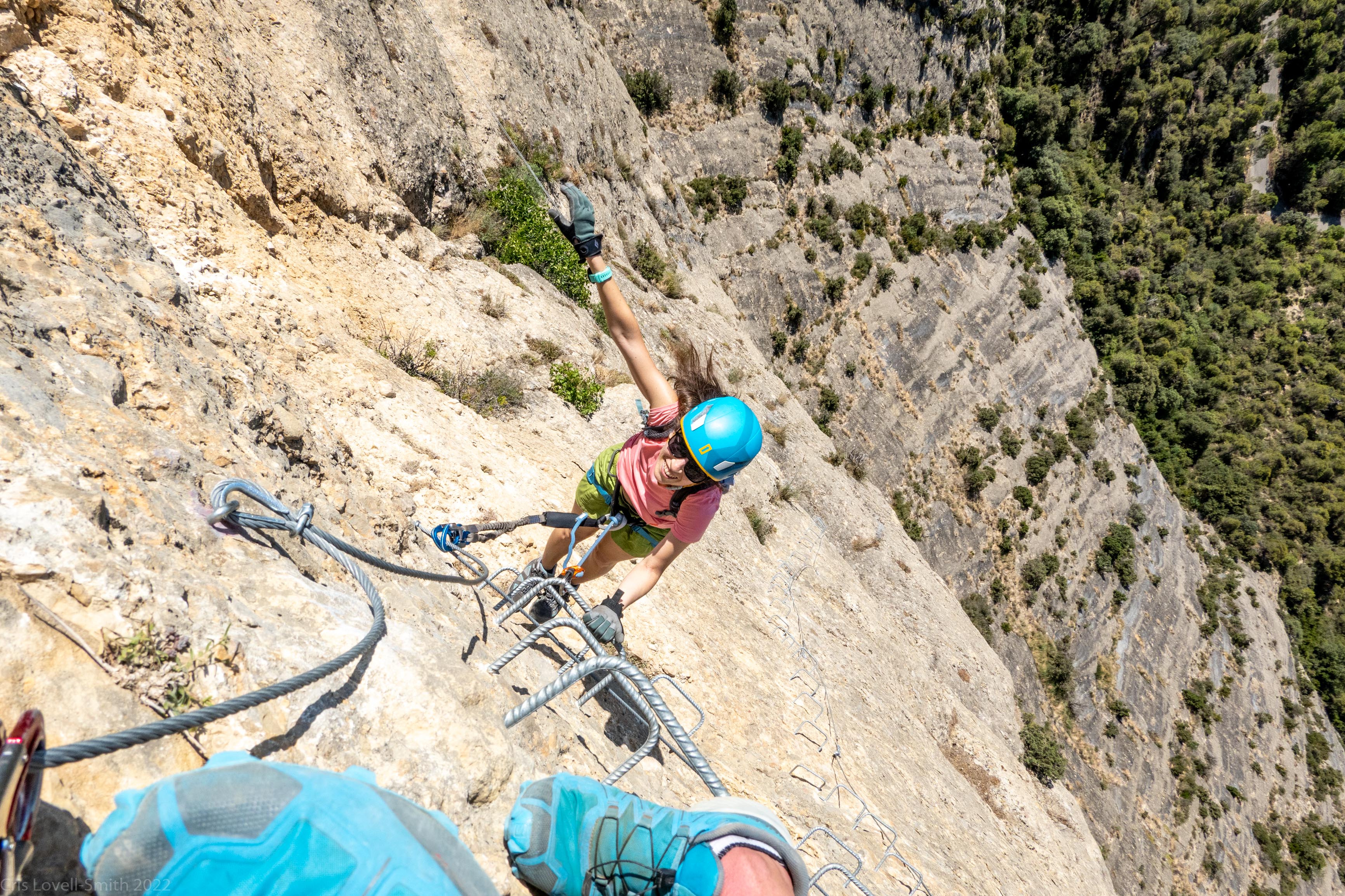 Ari and I headed away towards Andorra and the Pyrenees for a long weekend. Actually it was a normal length weekend but it felt longer due to being some place else. We worked Friday from our picturesque little stone Air BnB. On Saturday we left early to do a klettersteig, Via Ferrada de la Roca Nareida, about half an hour’s drive towards Andorra. It was hot, very hot. Very, very hot. Actually this was the theme of the entire weekend. We started with a surprisingly tough K3 section. It was shady but hot. Did I mention something about the heat? We finished the first section of the route and spent a while deliberating about starting the next section which was supposed to be K4 and therefore more difficult. We decided to try it and got moving. It turned out to be fine and we spent the next couple of hours climbing steep walls, crossing bridges, and climbing an interesting spiral ladder. Finally we reached the top of the wall and emerged into direct sunlight. The route down was even hotter and we were well and truly over it by the time we met Anaïs down at the car park. We walked down to the river and recovered under a tree and dipped in the river.
