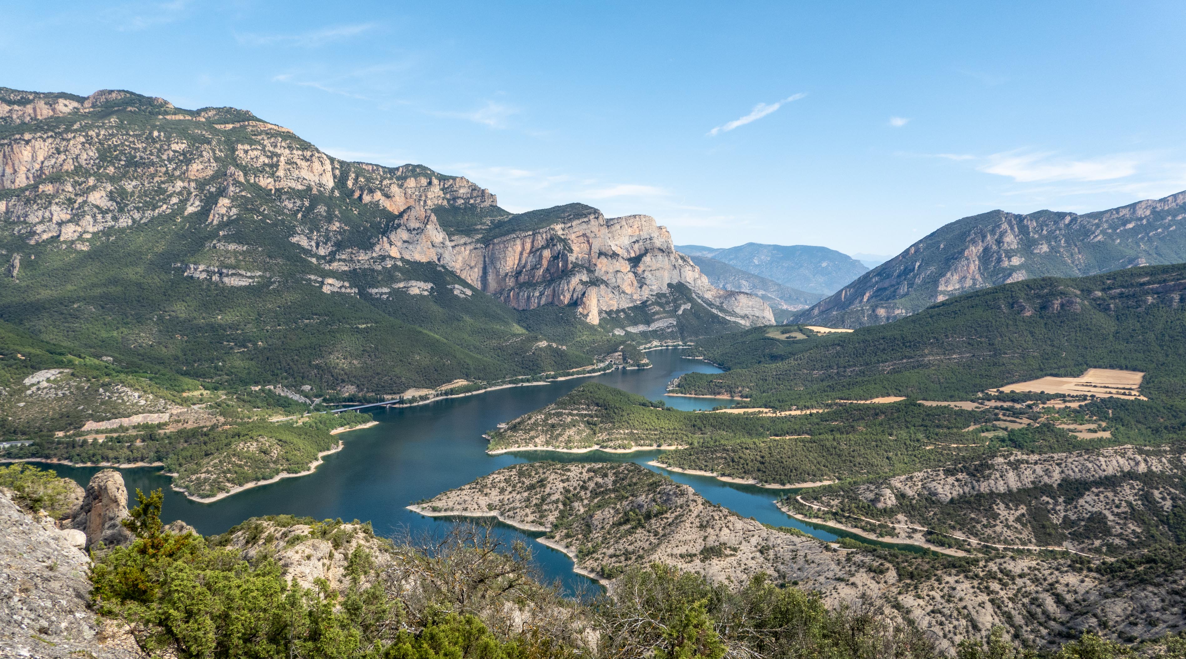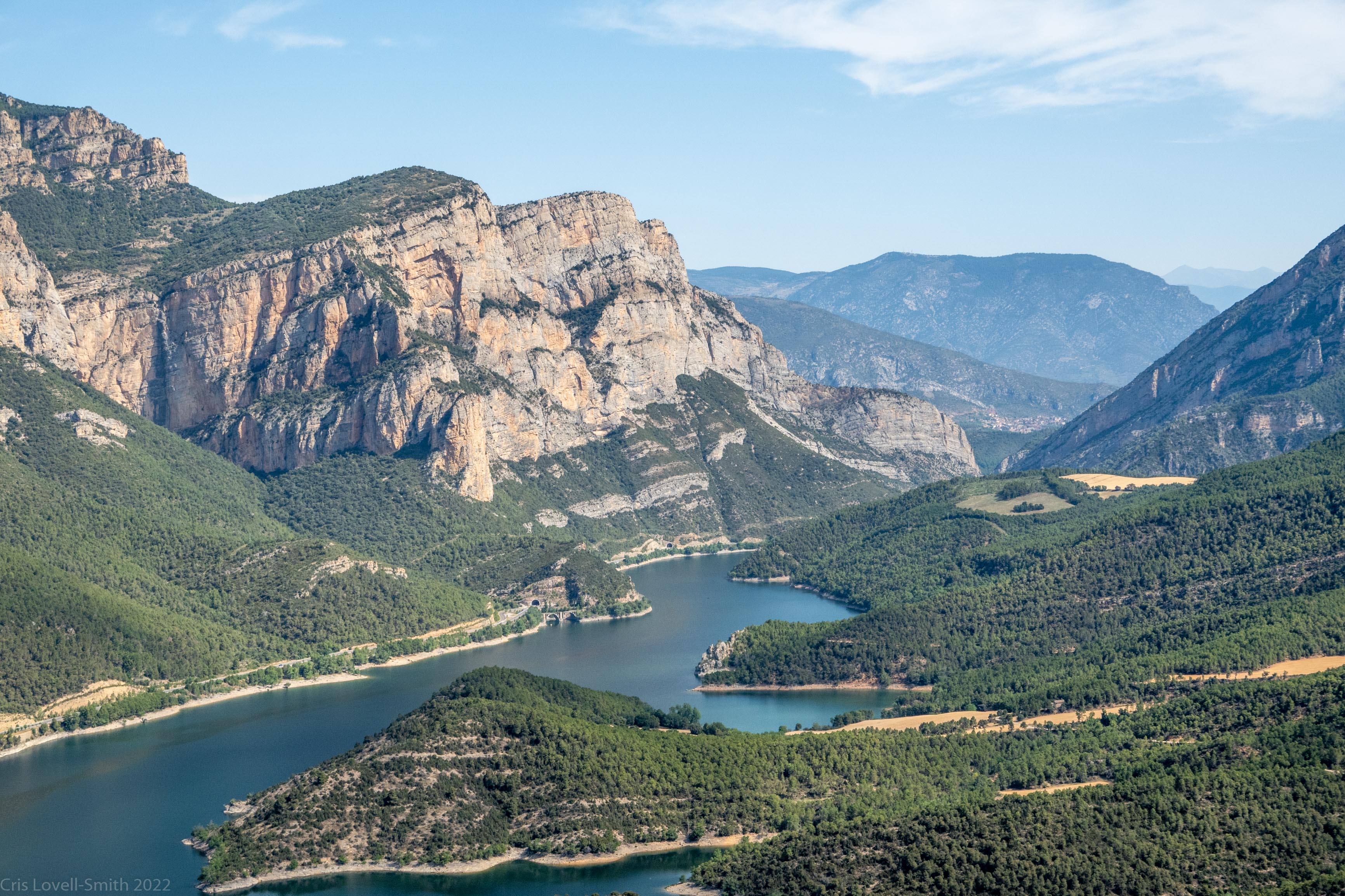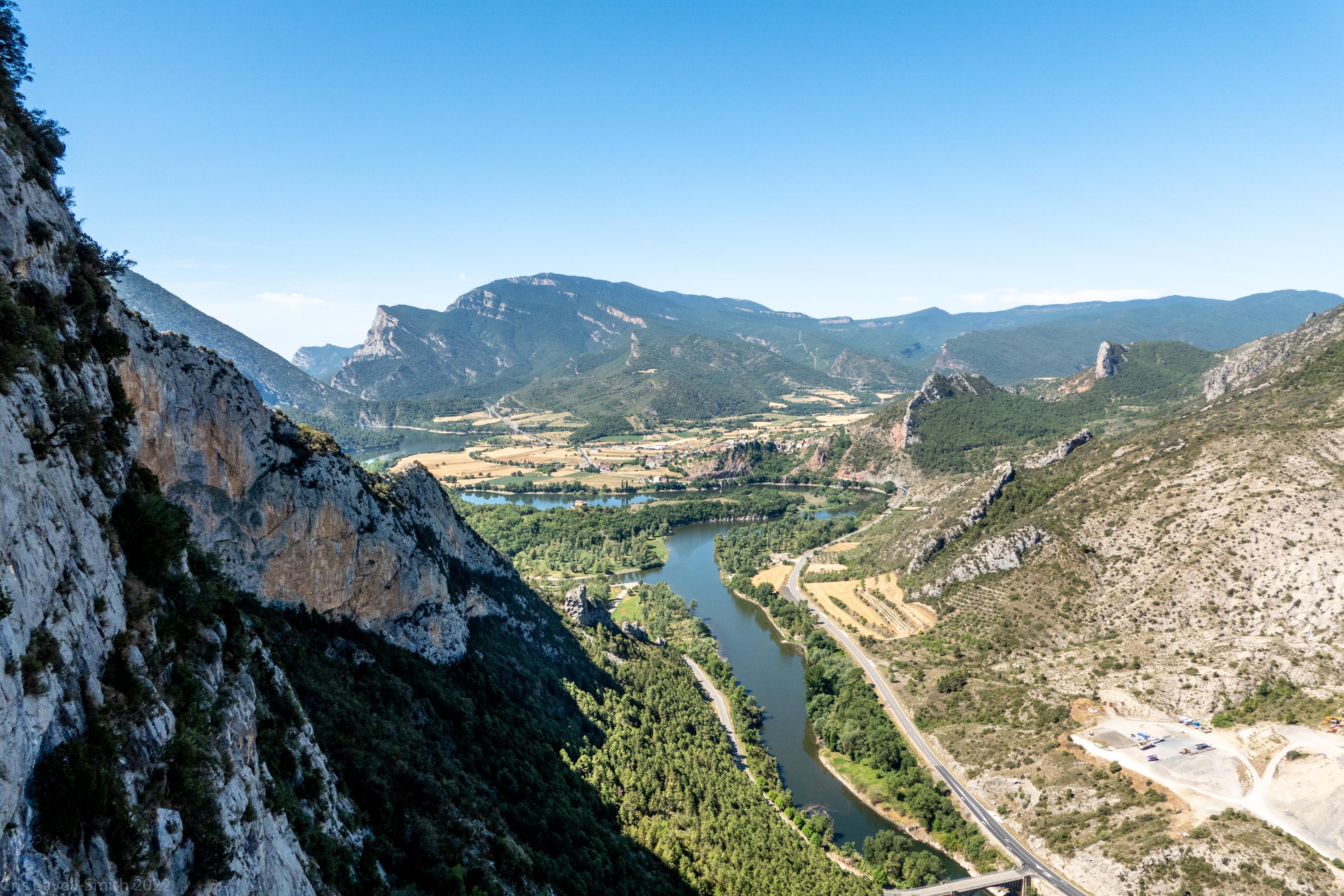 On Sunday we did another klettersteig, Serra de les Canals. It was a little shorter but just as warm. This time I brought a large 1.5 L bottle of ice with me. It melted rapidly as we climbed but stayed cold and refreshing. The ferrata was fairly easy but did involve climbing straight up a high wall to the summit, which definitely had the feeling of exposure about it. We had a nice view from the summit cross on the ridge down to the hyrdo lake below and along the road leading to Andorra. We could see roughly where we’d climbed the day before. We drove back to Barcelona in the evening.