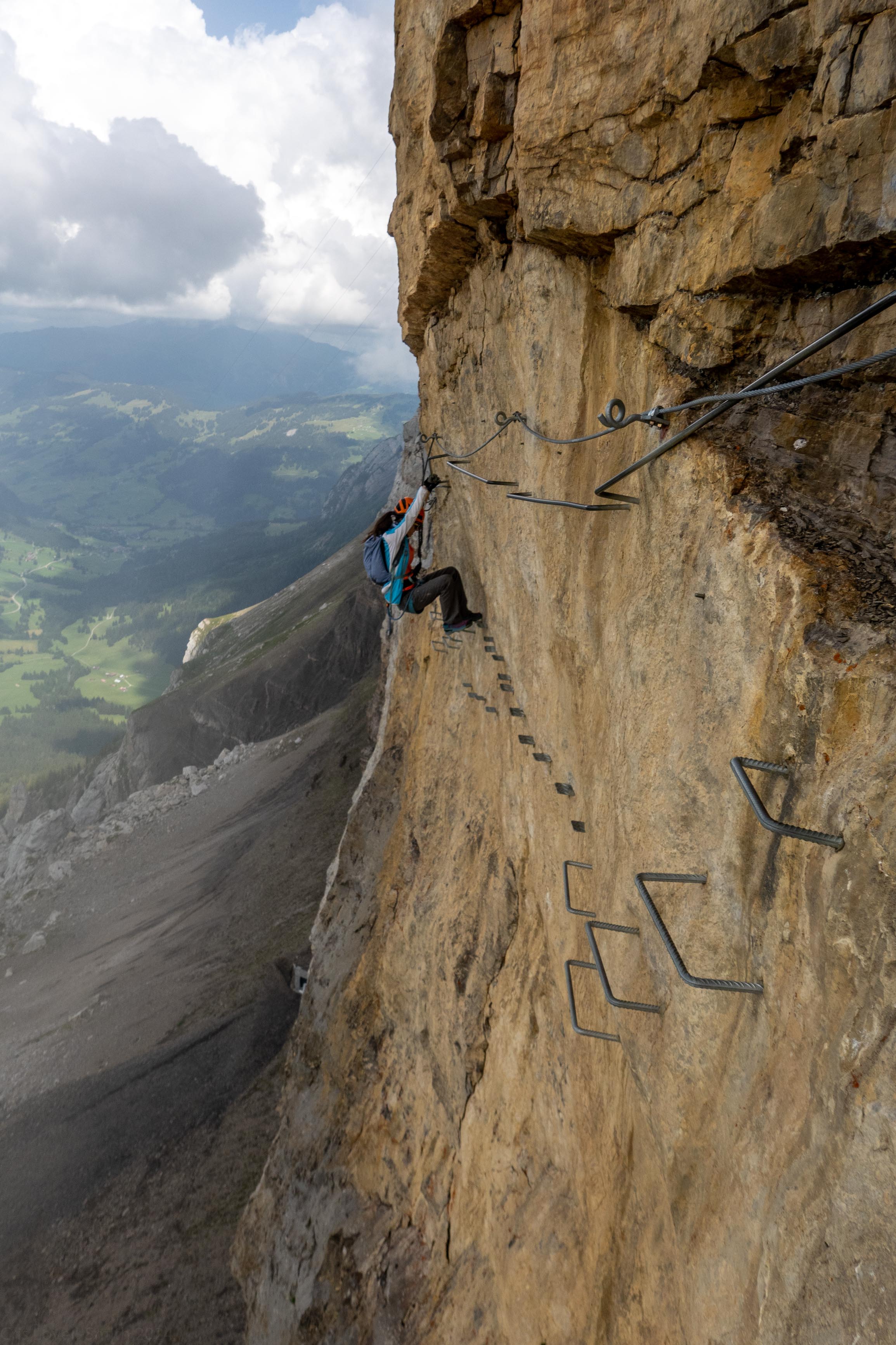 We drove to Switzerland to Col du Pillon near Les Diabrelets where Leonie and I used to run the Humanitrail. I ran up to the SAC hut at the middle station of the gondola and Ari took the berg-bahn up. She transported my large pack full of climbing gear and our ferrata equipment plus a bit of food. The day was mostly gone by the time we were at the hut and so we just spent the evening talking to the friendly hut warden and checking out the view.