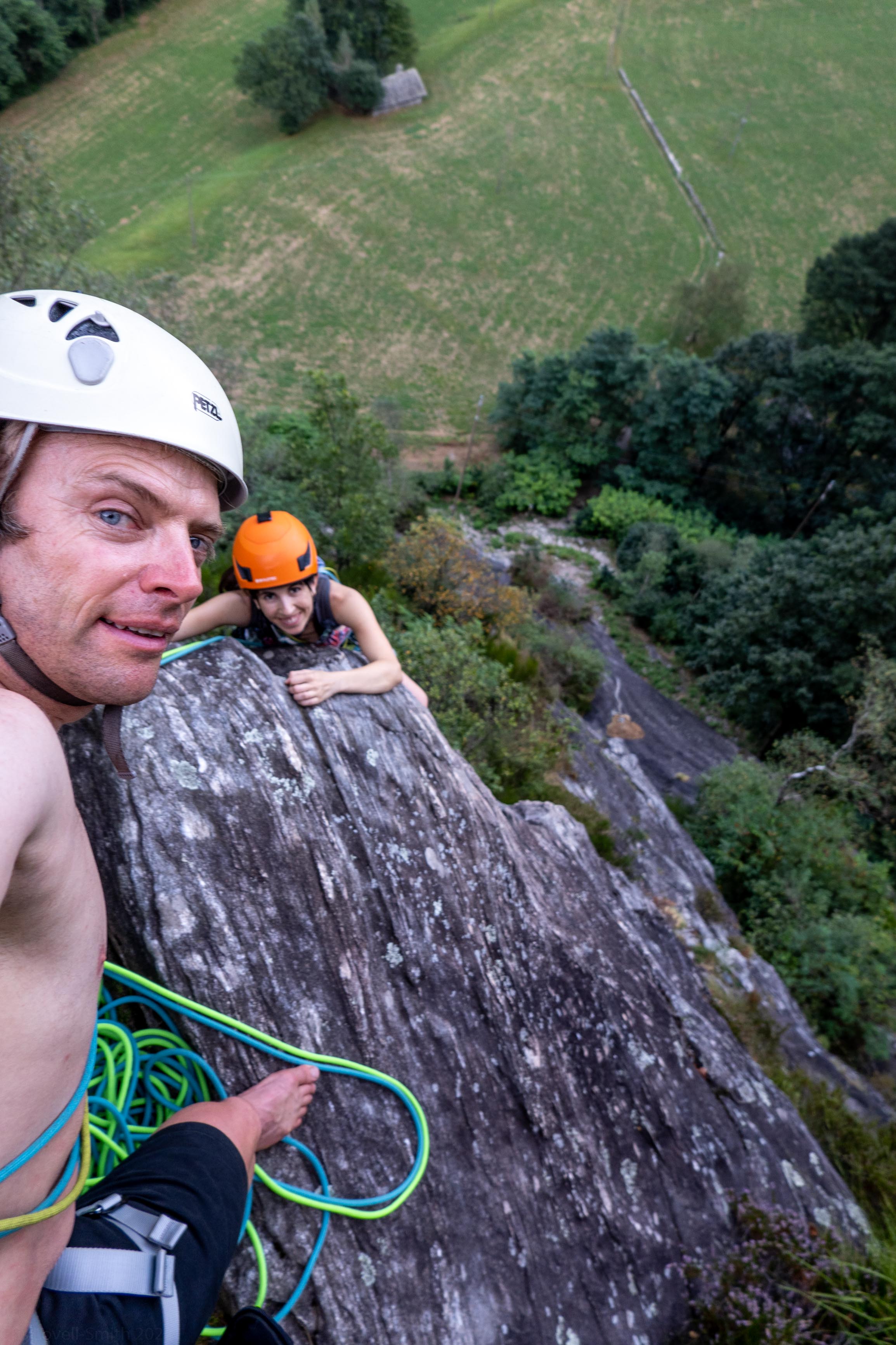 We drove into the hills. It was a little cooler than in the valley but still pretty warm. We found our way to the crag named Ove tornar desio by following the stone cairns up the dry stream bed and then taking a left through the trees. We’d both been there once before in 2019 by less extreme temperatures (during a more sensible autumn trip). We started an easy three pitch route. The climbing was typical of Ticino, with friction being the name of the game. I lead the first pitch and emerged out of the shade of the trees to a slab positioned perfectly to soak up maximum energy from the sun’s rays. It was almost too hot to touch and I was happy to reach the anchor bolts. Ari followed up and then climbed past into some shade and then beyond to next anchor. We called it quits once I arrived and abseiled back down to the ground before retreating to the river at the campsite in the valley below.