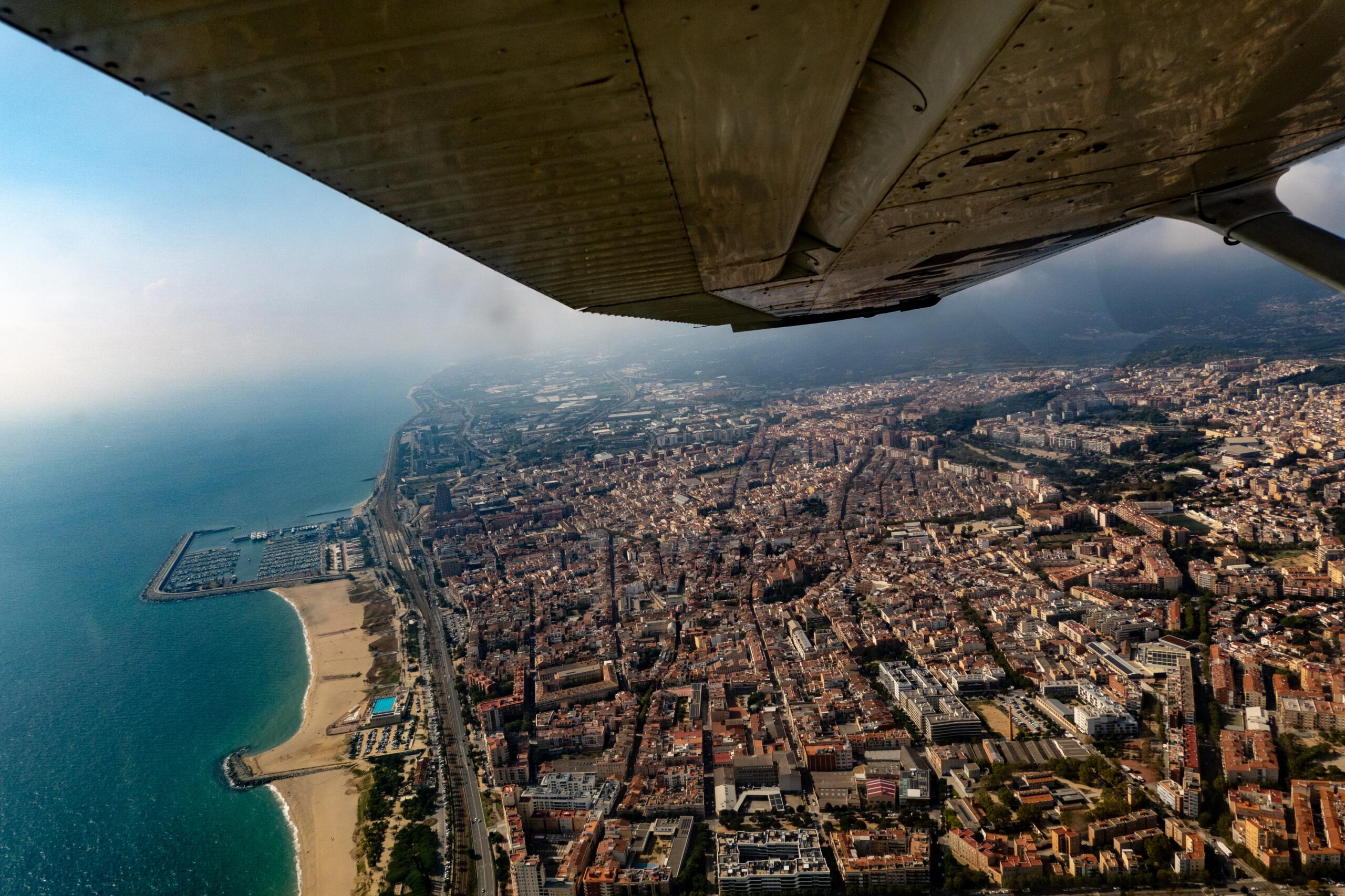 We arrived at the Sabadell airfield and began filling out paperwork. There we met Joan’s co-pilot, Francesc, and we headed out to the tarmac to check out the plane. It was a little Cessna four-seater, I guess. It certainly wasn’t an A380. The pilots checked the plane over and opened the doors. Ari climbed into the back seat and I started to follow. Joan put down his foot and let out a loud “stop!”, which was a bit confusing. Instead he crawled into the back seat and I was directed to the front seat. Ok, that’s nice, I thought. I’ll get a better view in the front seat next to the pilot.